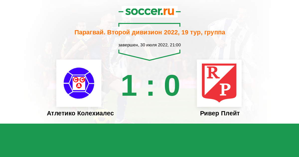Атлетико Колехиалес - Ривер Плейт: обзор матча 30 июля 2022