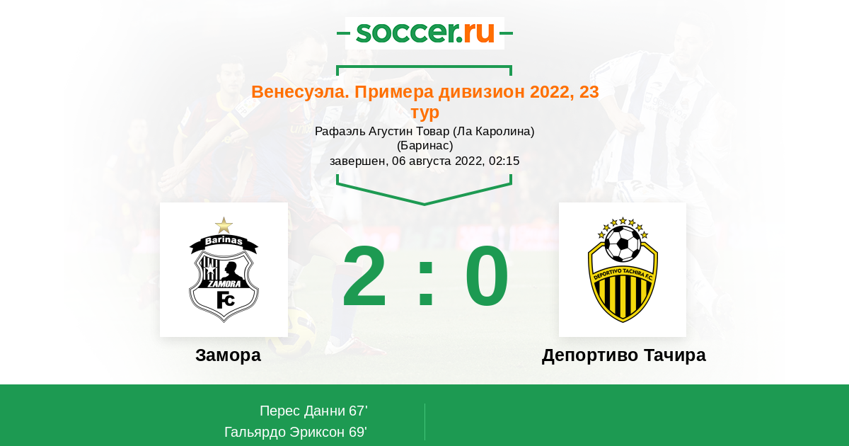 Замора - Депортиво Тачира: обзор матча 6 августа 2022