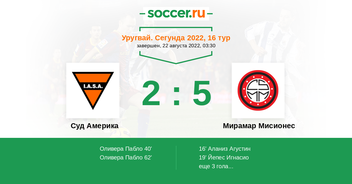Суд Америка - Мирамар Мисионес: обзор матча 22 августа 2022
