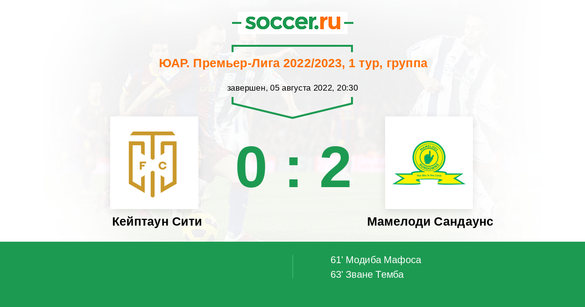 Кейптаун Сити - Мамелоди Сандаунс: обзор матча 5 августа 2022