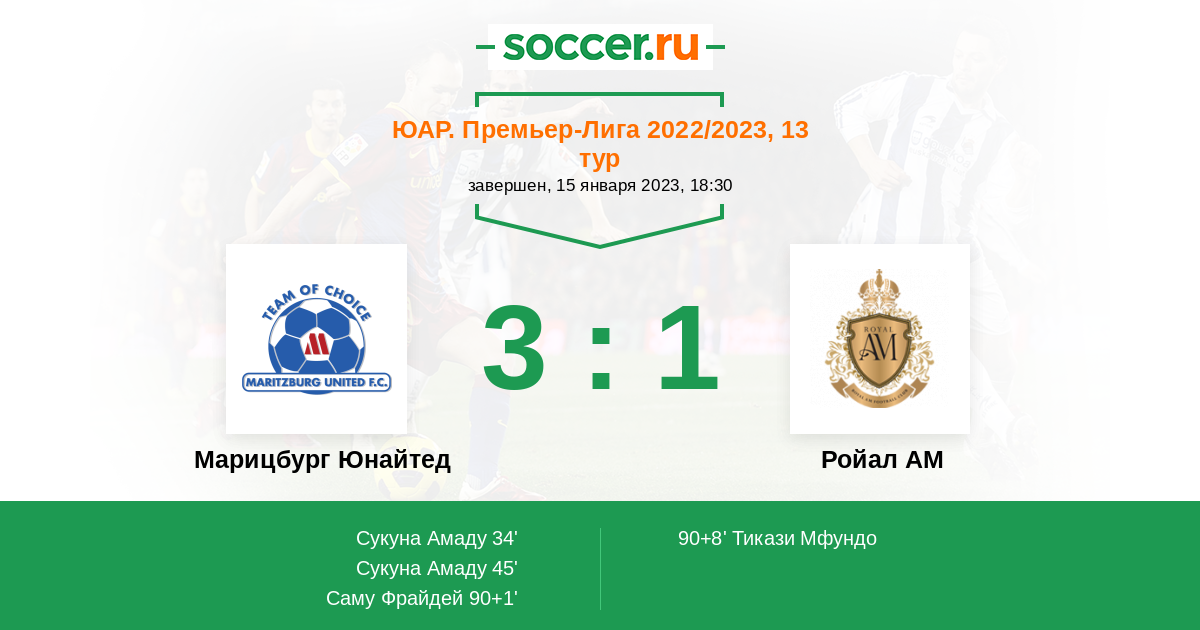 Марицбург Юнайтед - Ройал АМ: обзор матча 15 января 2023