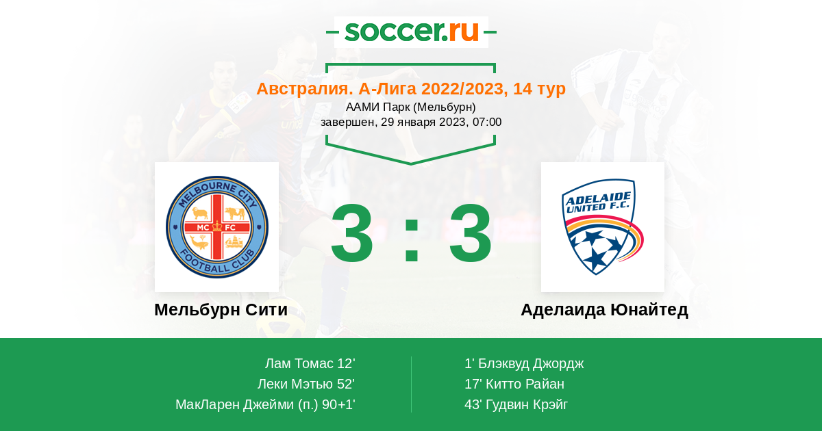 Мельбурн Сити - Аделаида Юнайтед: обзор матча 29 января 2023
