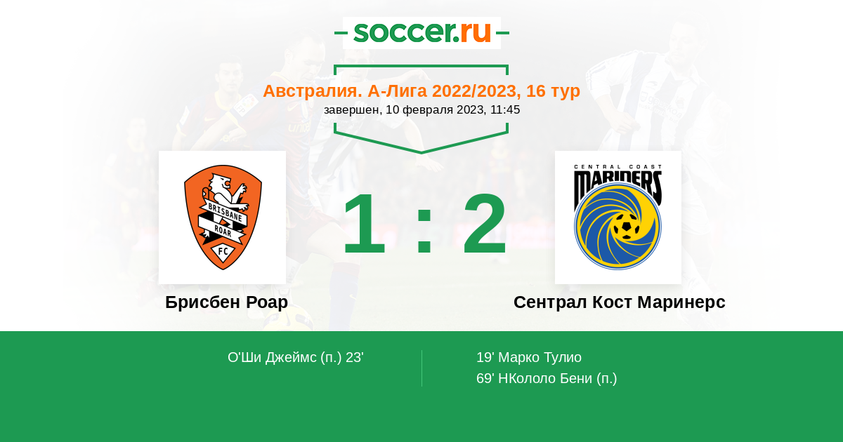 Брисбен Роар - Сентрал Кост Маринерс: обзор матча 10 февраля 2023