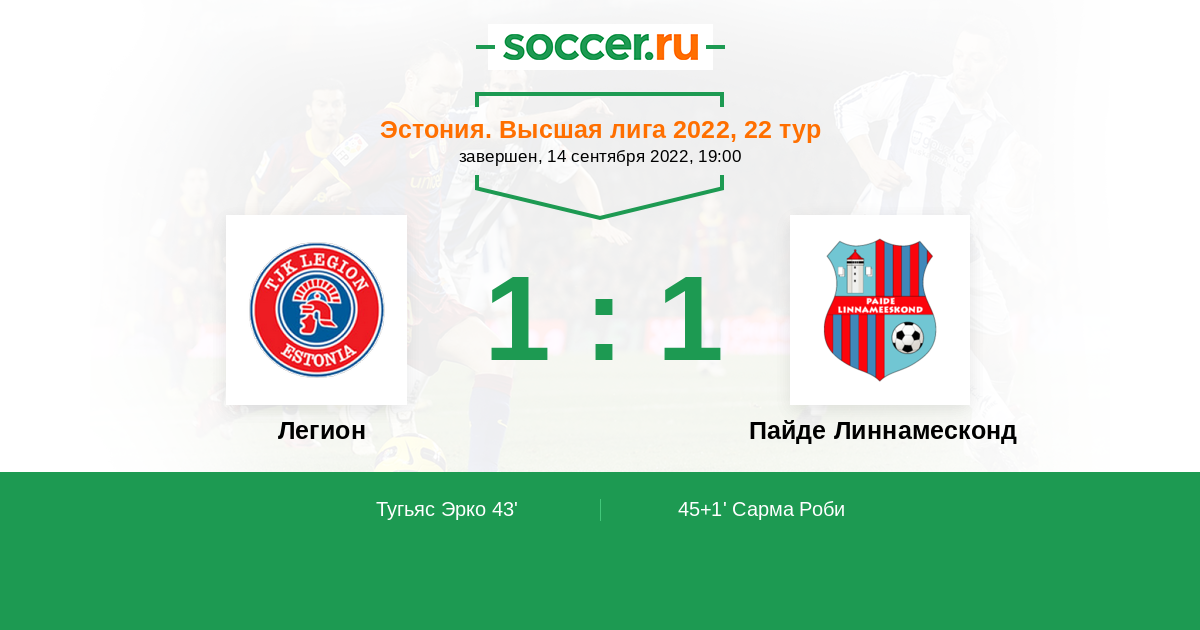 Легион - Пайде Линнамесконд: обзор матча 14 сентября 2022