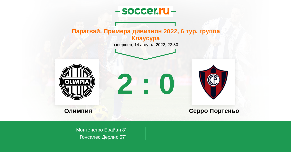 Олимпия - Серро Портеньо: обзор матча 14 августа 2022