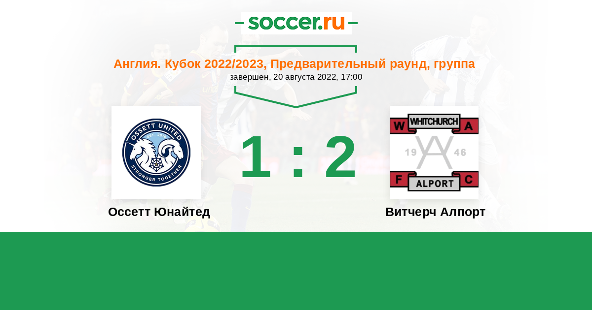 Оссетт Юнайтед - Витчерч Алпорт: обзор матча 20 августа 2022