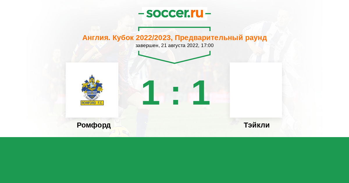 Ромфорд - Тэйкли: обзор матча 21 августа 2022