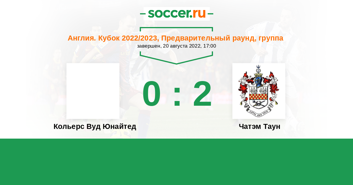 Кольерс Вуд Юнайтед - Чатэм Таун: обзор матча 20 августа 2022