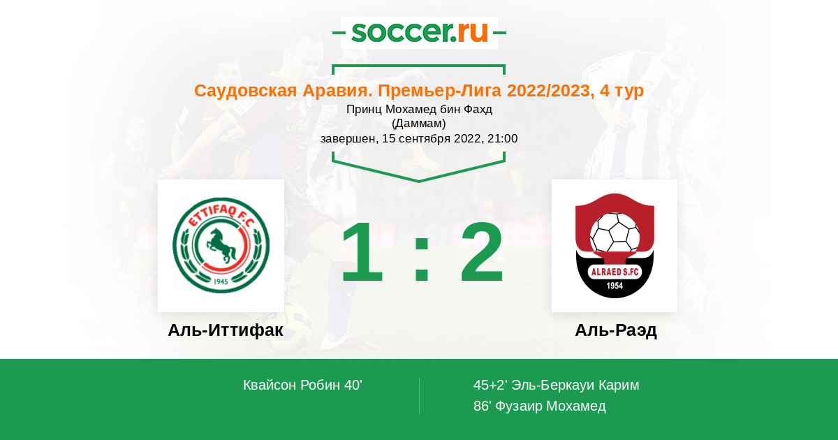 Аль-Иттифак - Аль-Раэд: обзор матча 15 сентября 2022
