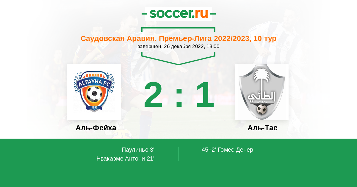 Аль-Фейха - Аль-Тае: обзор матча 26 декабря 2022