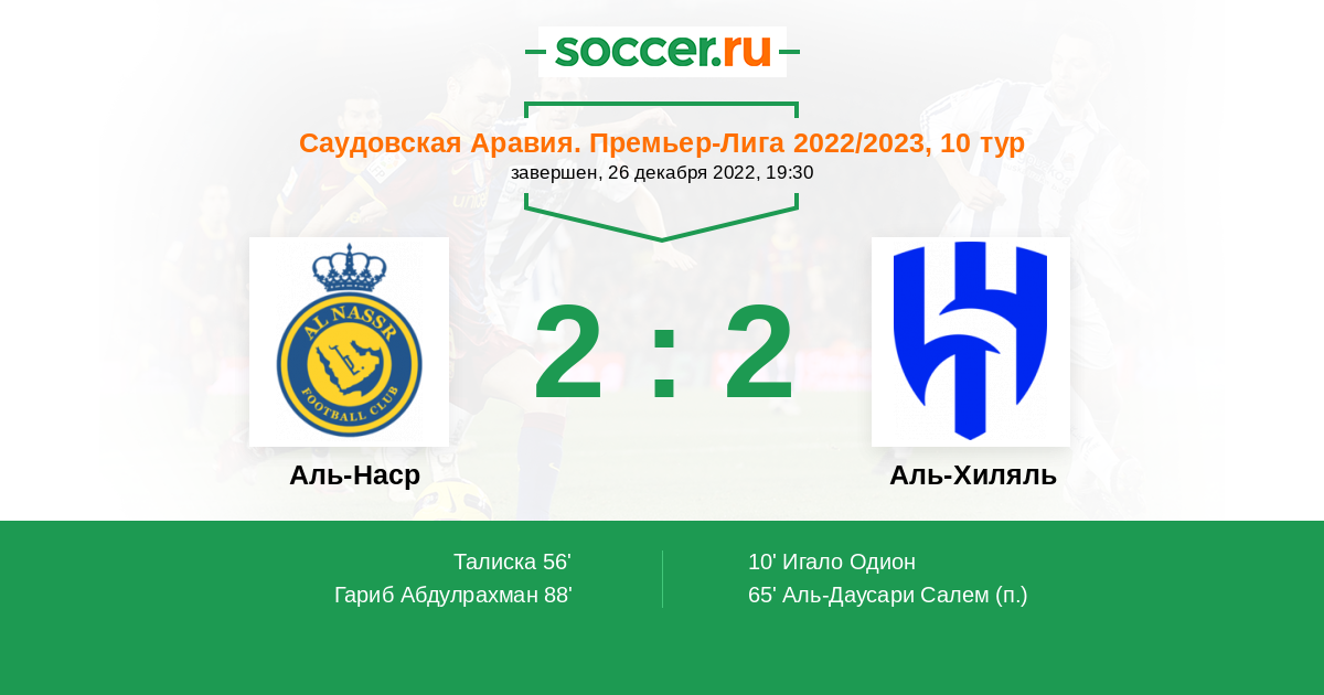 Аль-Наср - Аль-Хиляль: обзор матча 26 декабря 2022