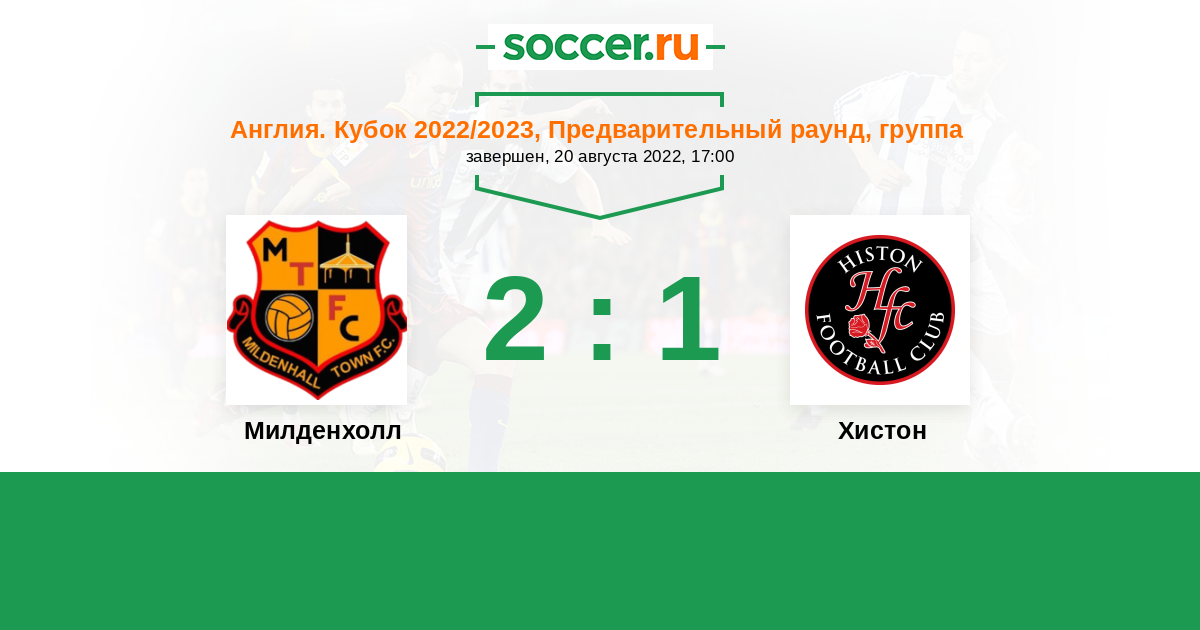 Милденхолл - Хистон: обзор матча 20 августа 2022