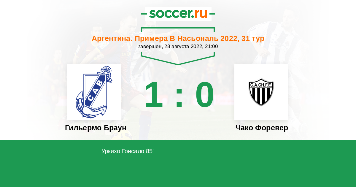 Гильермо Браун - Чако Форевер: обзор матча 28 августа 2022