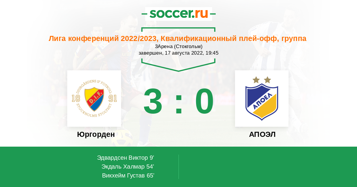 Юргорден - АПОЭЛ: обзор матча 17 августа 2022