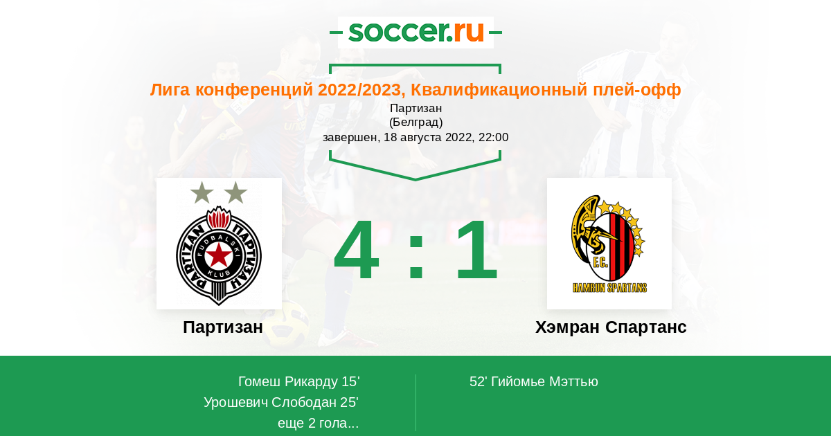 Партизан - Хэмран Спартанс: обзор матча 18 августа 2022