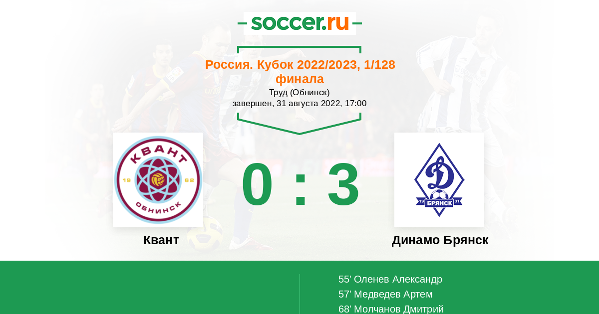 Квант - Динамо Брянск: обзор матча 31 августа 2022