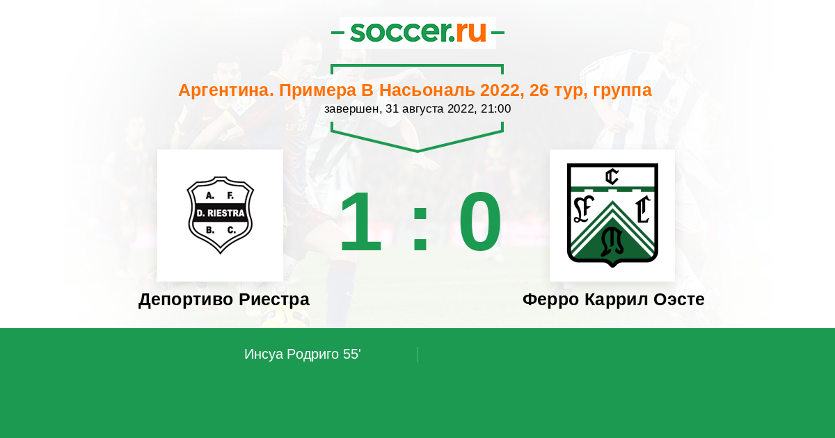Депортиво Риестра - Ферро Каррил Оэсте: обзор матча 31 августа 2022