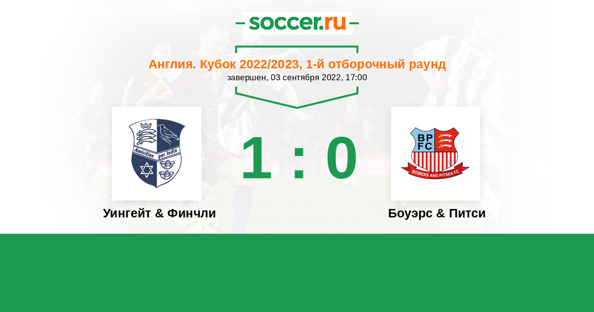 Уингейт & Финчли - Боуэрс & Питси: обзор матча 3 сентября 2022