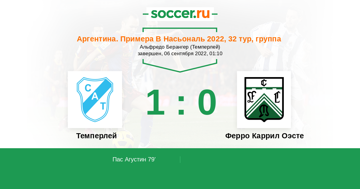 Темперлей - Ферро Каррил Оэсте: обзор матча 6 сентября 2022