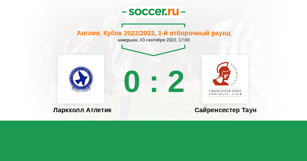 Ларкхолл Атлетик - Сайренсестер Таун: обзор матча 3 сентября 2022