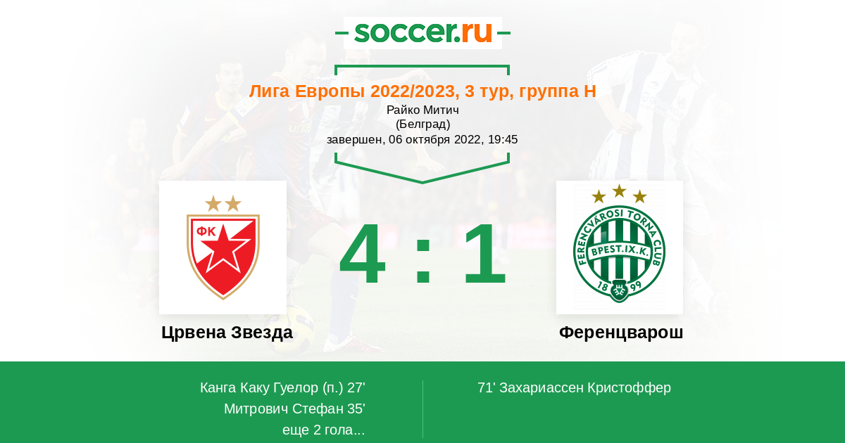 Црвена Звезда - Ференцварош: обзор матча 6 октября 2022