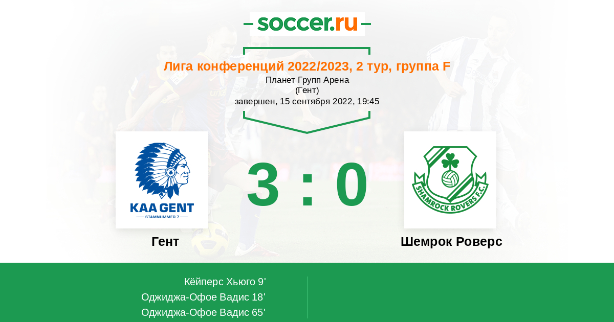 Гент - Шемрок Роверс: обзор матча 15 сентября 2022