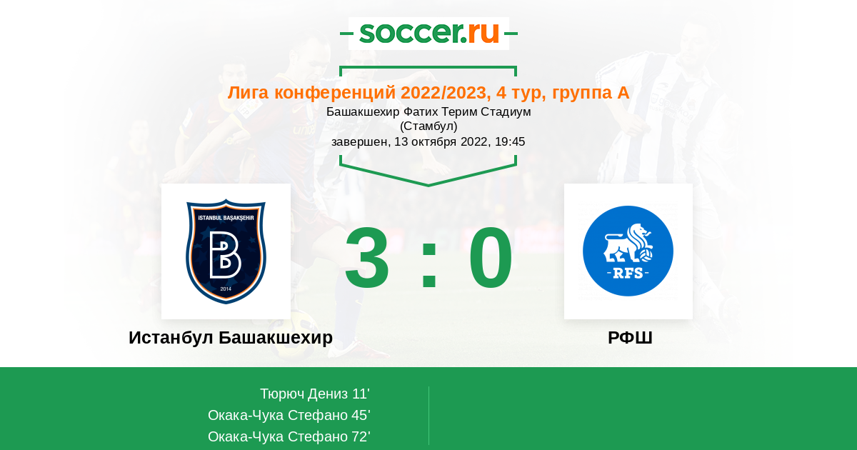 Истанбул Башакшехир - РФШ: обзор матча 13 октября 2022