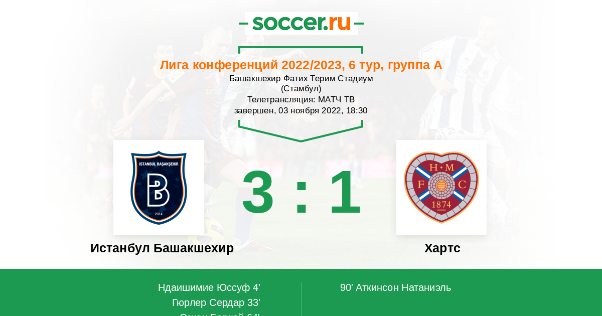 Истанбул Башакшехир - Хартс: обзор матча 3 ноября 2022