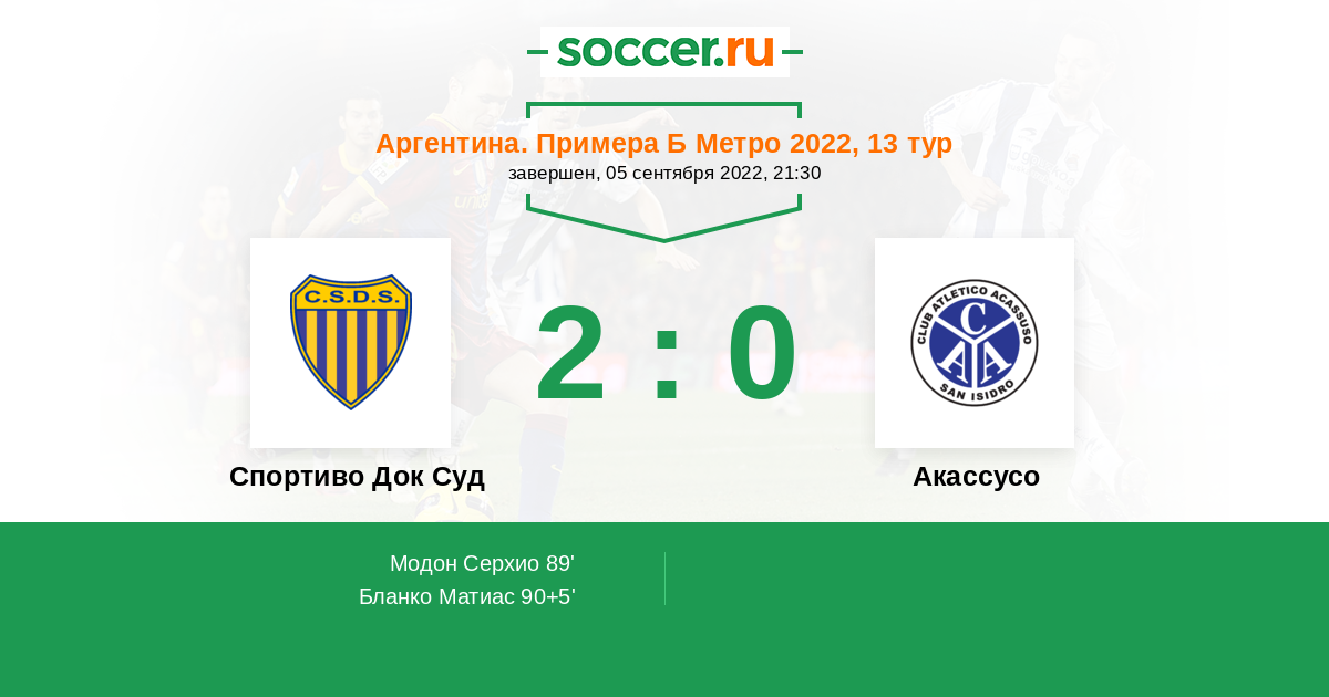 Спортиво Док Суд - Акассусо: обзор матча 5 сентября 2022