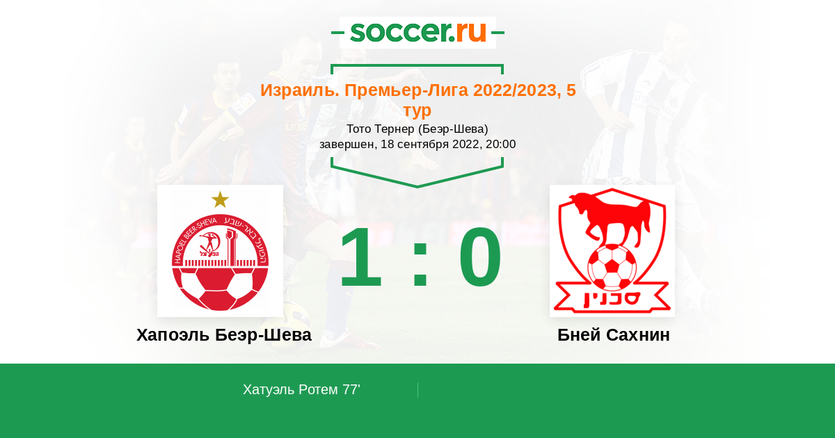 Хапоэль Беэр-Шева - Бней Сахнин: обзор матча 18 сентября 2022