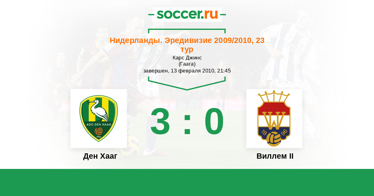Ден Хааг - Виллем II: обзор матча 13 февраля 2010