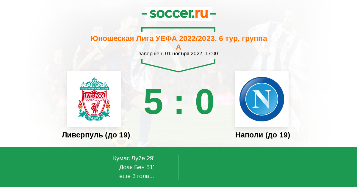 Ливерпуль (до 19) - Наполи (до 19): обзор матча 1 ноября 2022