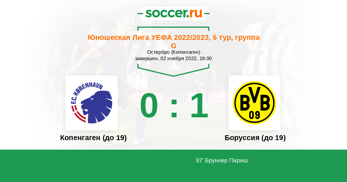 Копенгаген (до 19) - Боруссия (до 19): обзор матча 2 ноября 2022