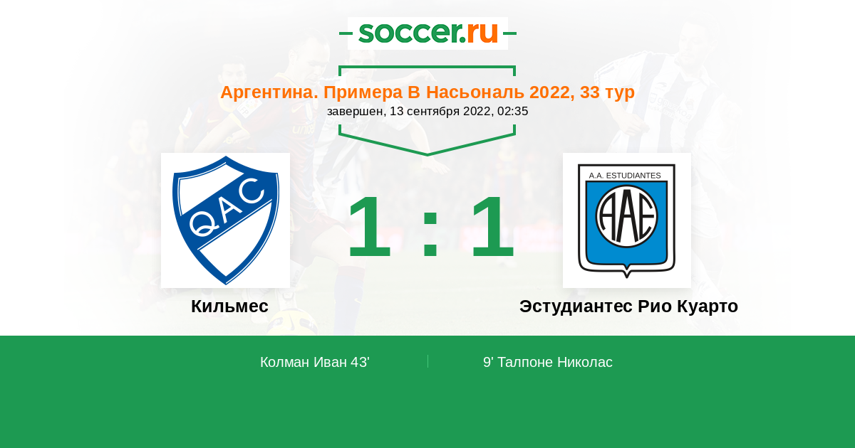 Кильмес - Эстудиантес Рио Куарто: обзор матча 13 сентября 2022