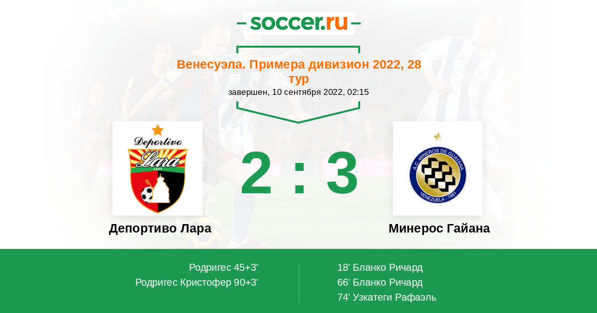 Депортиво Лара - Минерос Гайана: обзор матча 10 сентября 2022