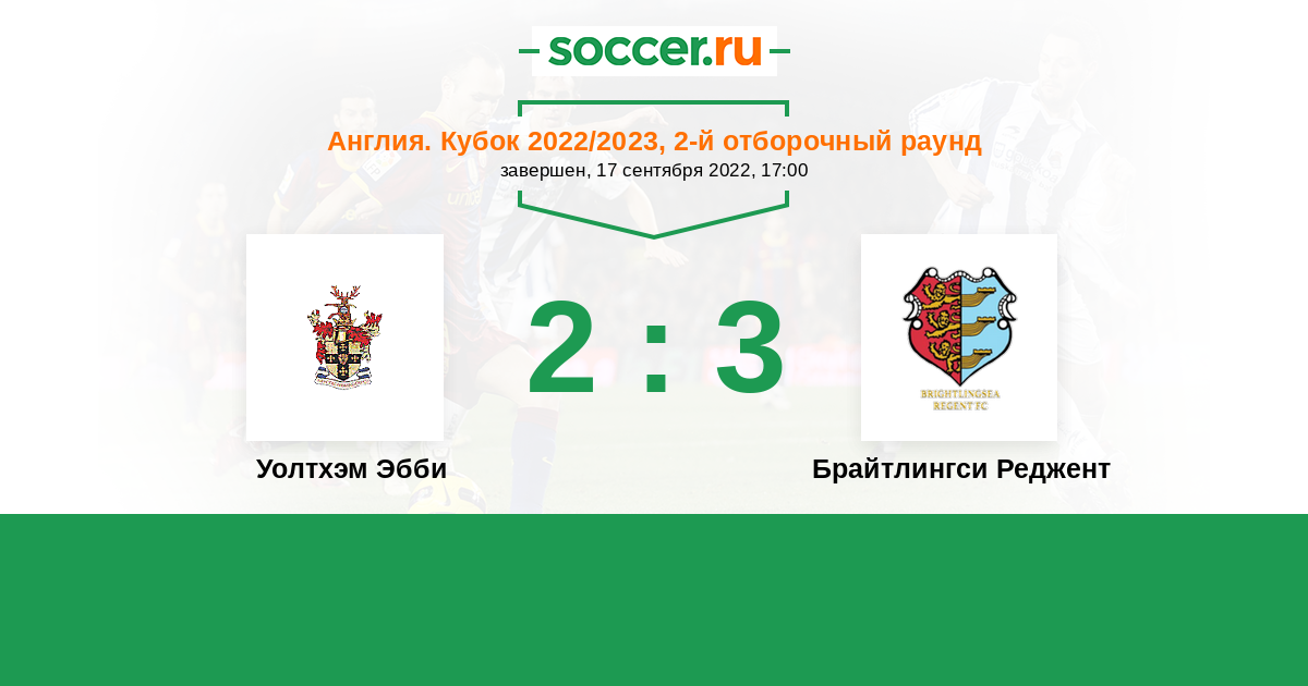 Уолтхэм Эбби - Брайтлингси Реджент: обзор матча 17 сентября 2022
