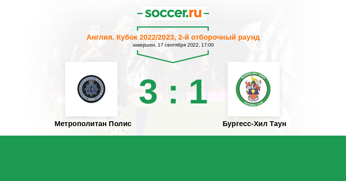 Метрополитан Полис - Бургесс-Хил Таун: обзор матча 17 сентября 2022
