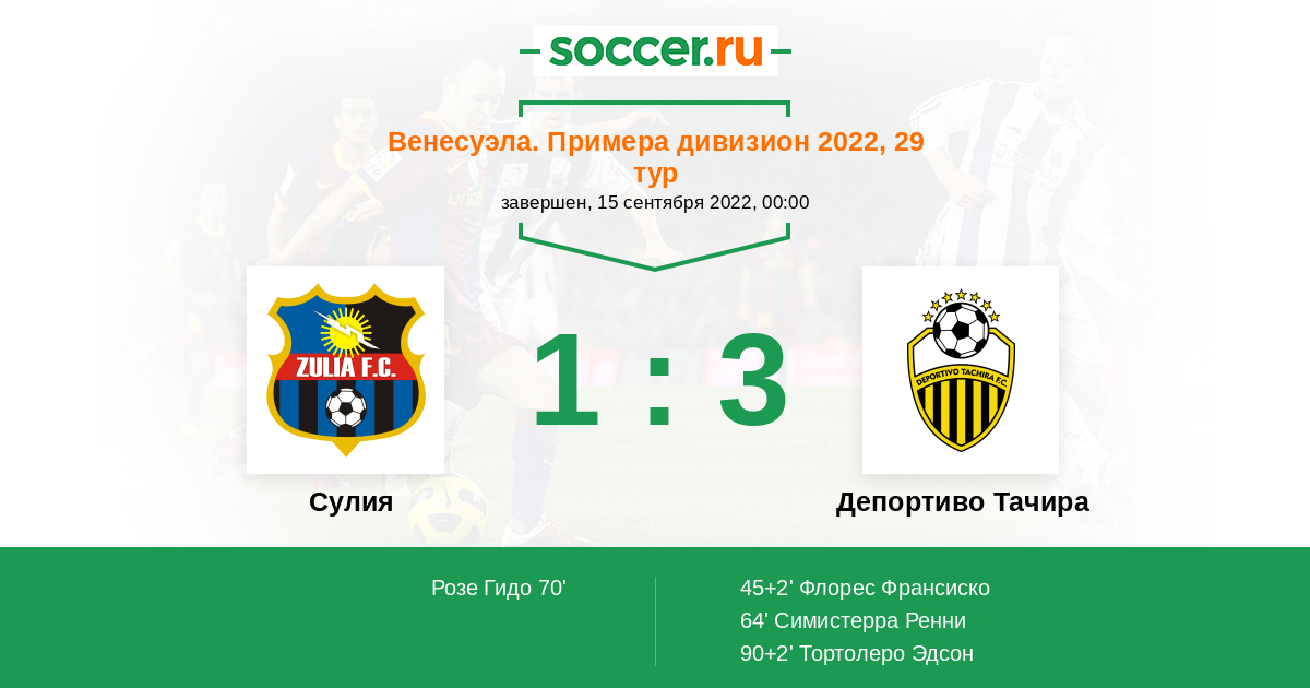 Сулия - Депортиво Тачира: обзор матча 15 сентября 2022