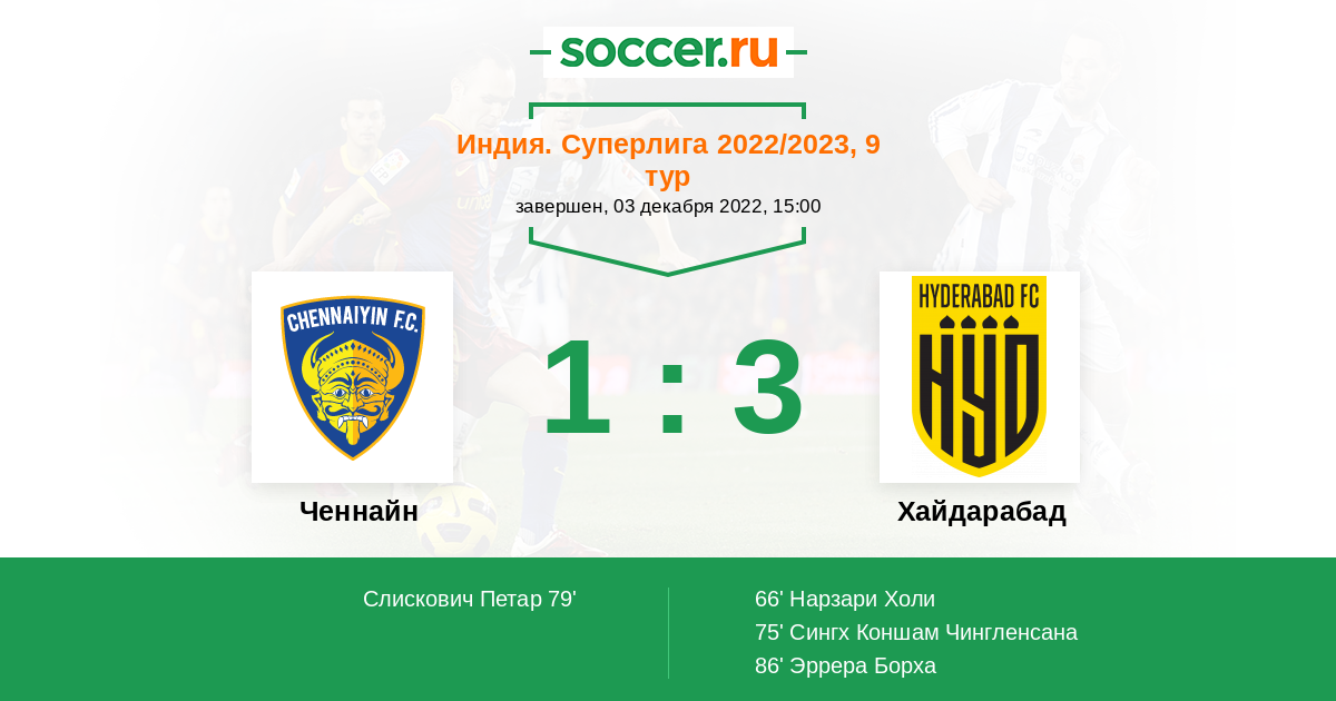 Ченнайн - Хайдарабад: обзор матча 3 декабря 2022
