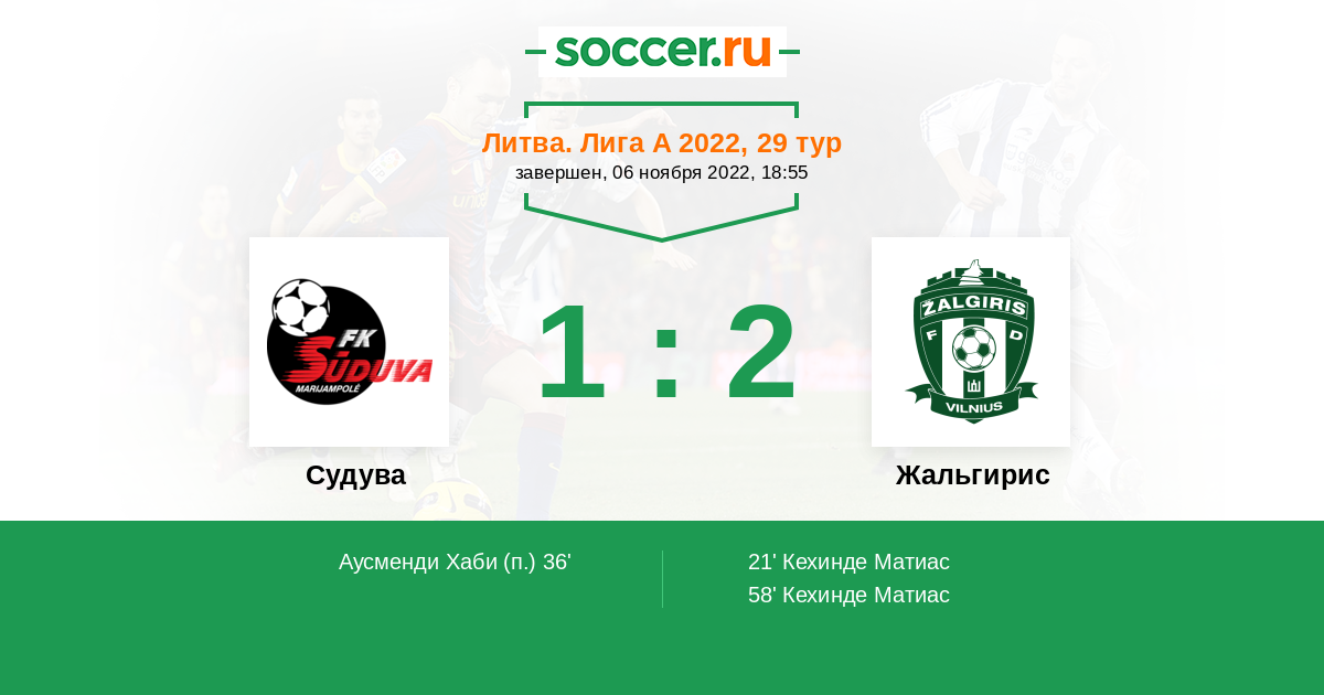 Судува - Жальгирис: обзор матча 6 ноября 2022