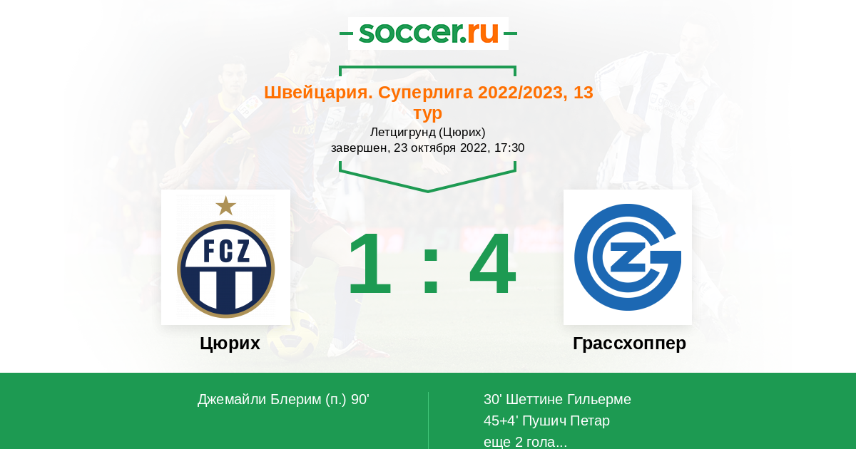Цюрих - Грассхоппер: обзор матча 23 октября 2022