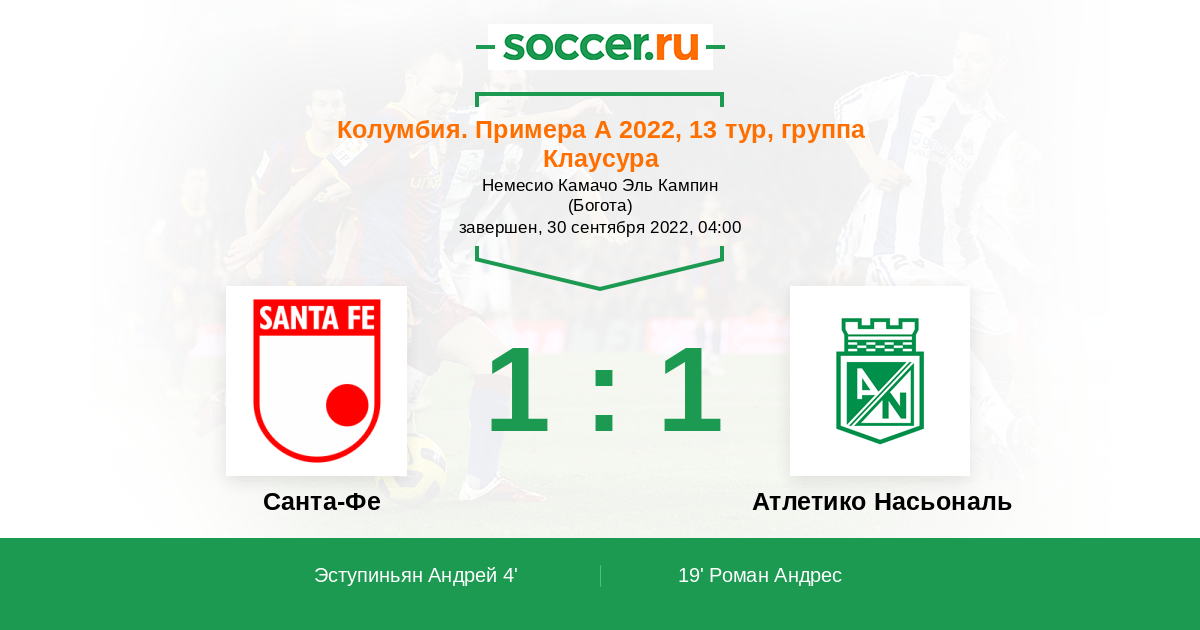 Санта-Фе - Атлетико Насьональ: обзор матча 30 сентября 2022
