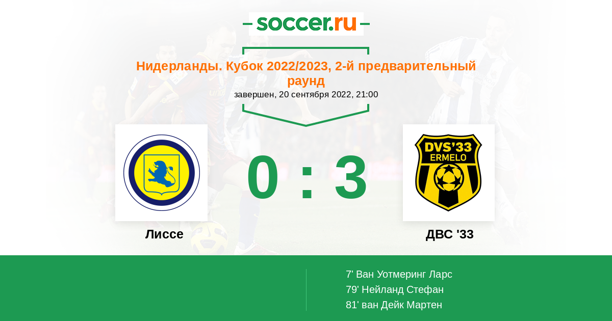 Лиссе - ДВС '33: обзор матча 20 сентября 2022