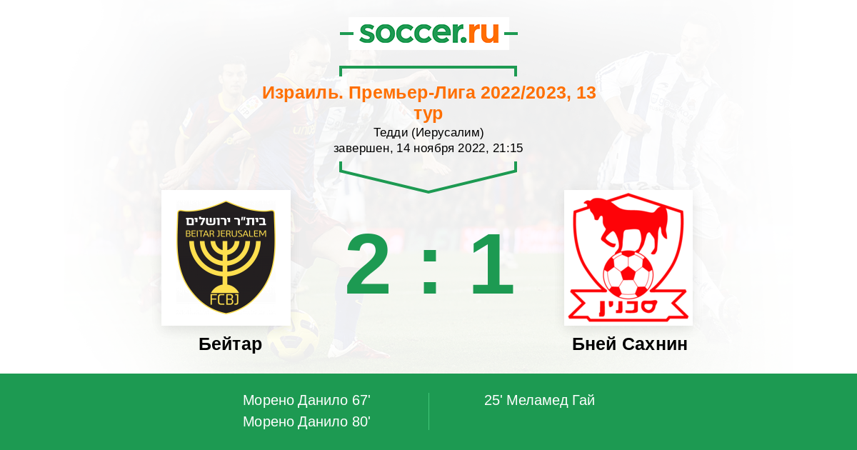 Бейтар - Бней Сахнин: обзор матча 14 ноября 2022