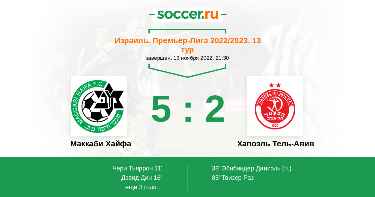 Маккаби Хайфа - Хапоэль Тель-Авив: обзор матча 13 ноября 2022