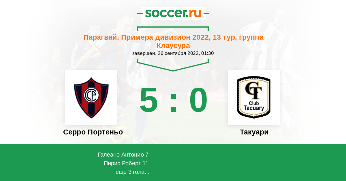 Серро Портеньо - Такуари: обзор матча 26 сентября 2022