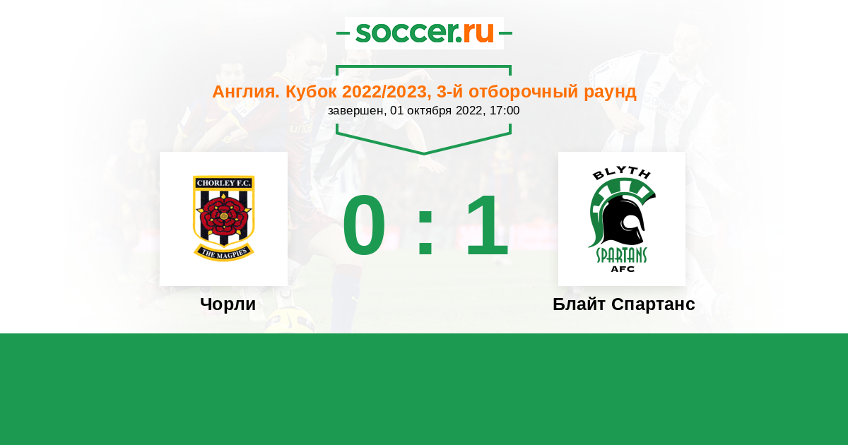 Чорли - Блайт Спартанс: обзор матча 1 октября 2022