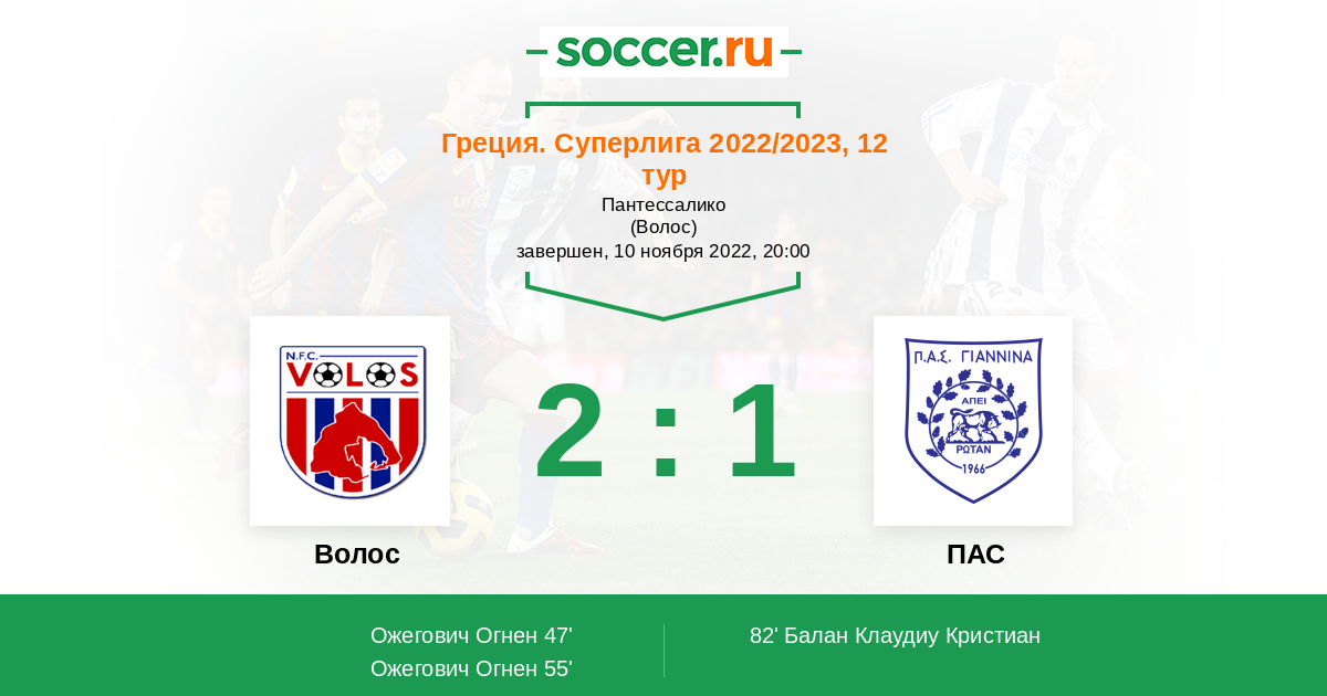 Волос - ПАС: обзор матча 10 ноября 2022