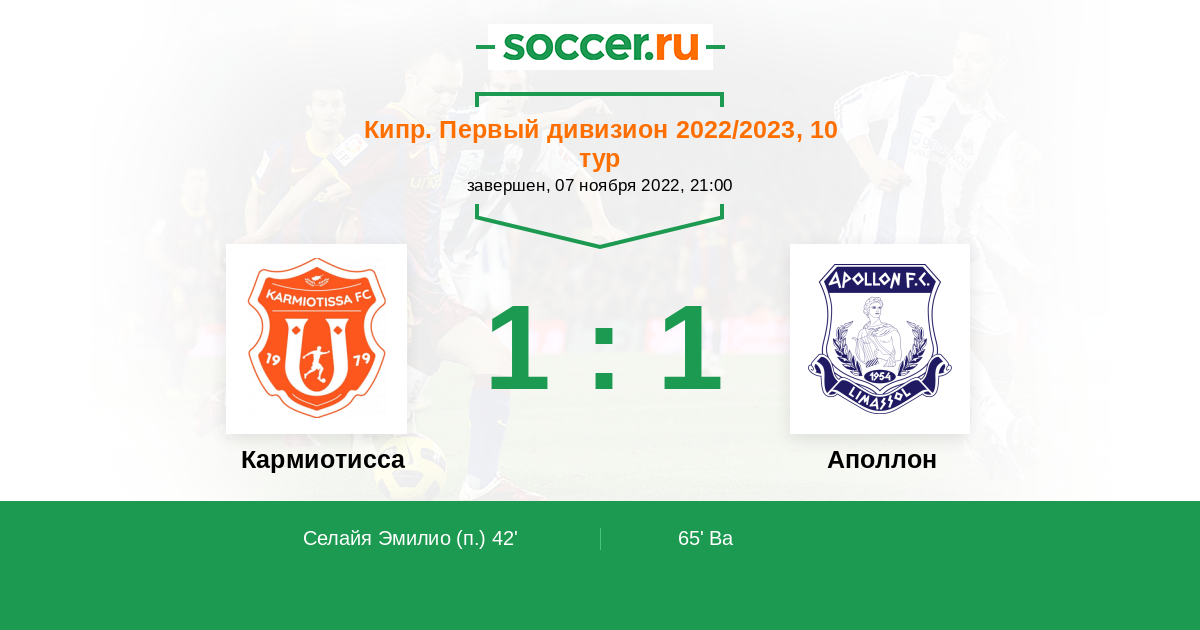 Кармиотисса - Аполлон: обзор матча 7 ноября 2022