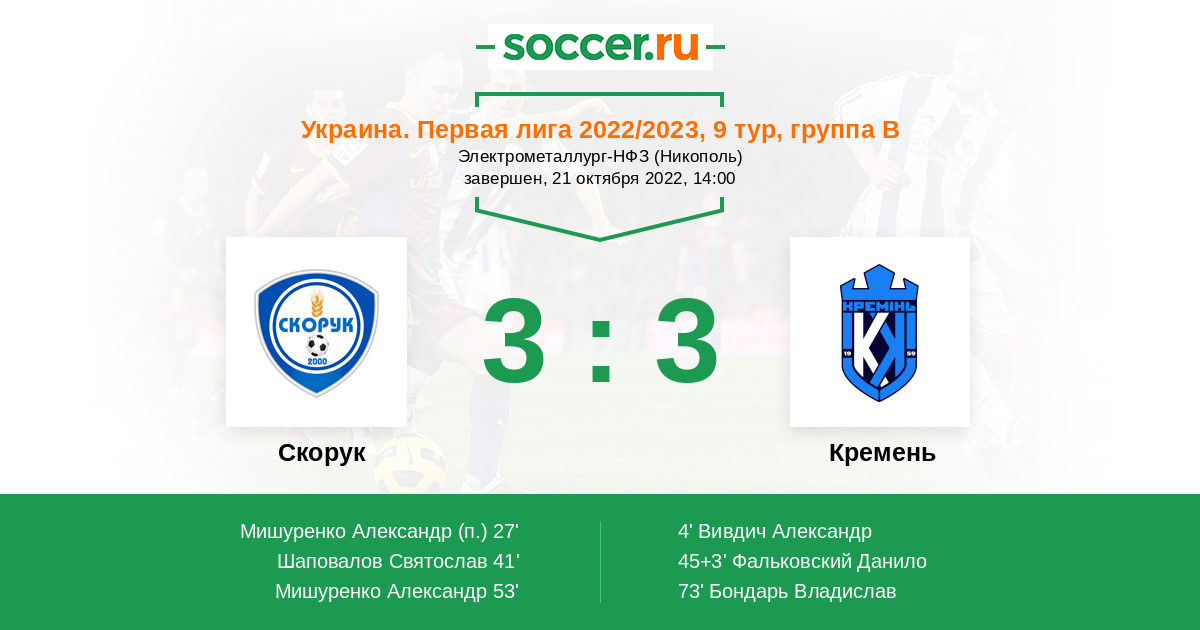Скорук - Кремень: обзор матча 21 октября 2022